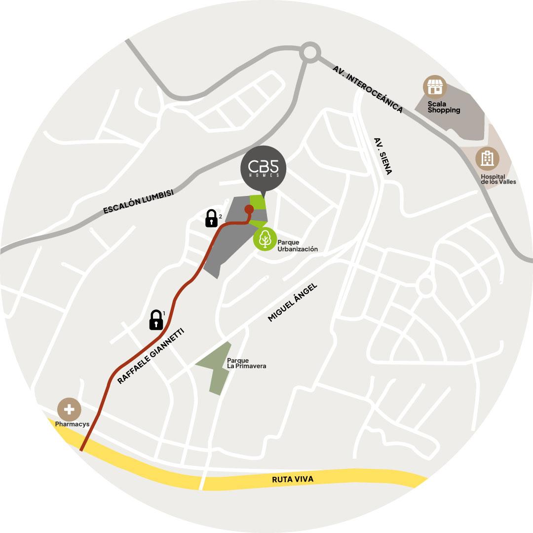 Estratégicamente situado a 3 minutos de la Ruta Viva y 5 minutos a la Av. Oswaldo Guayasamín.